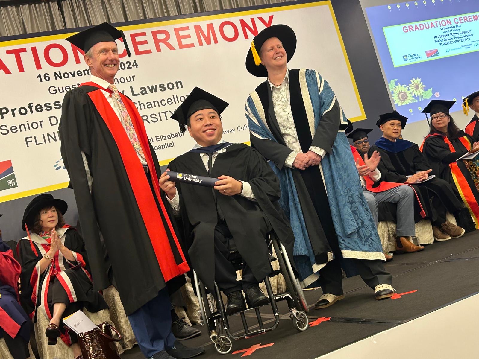 Professor Jonathan Craig, award winning graduate Mr Lin Fei, Ephraim and Professor Romy Lawson