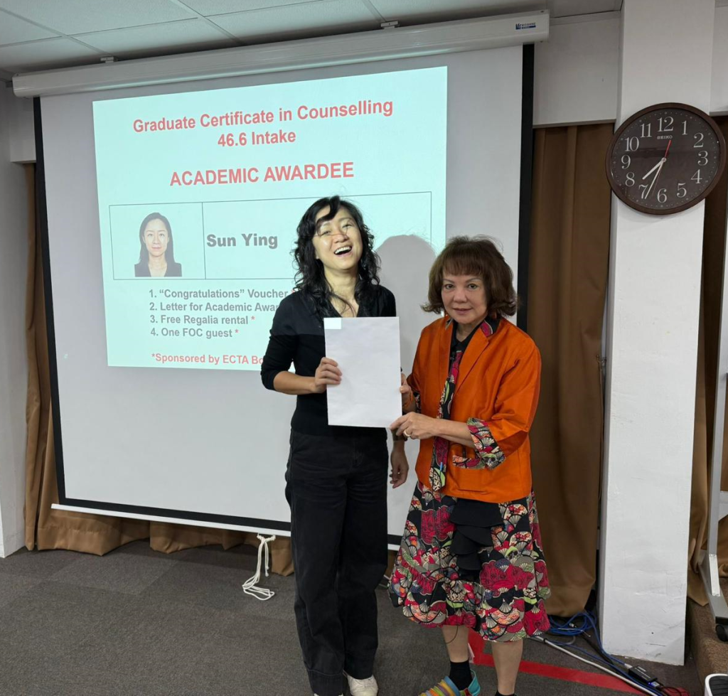 ECTA congratulates GD44.6 on their completion of Stage 2: Graduate Diploma in Counselling. The course review held on 21 August 2025 marked a key milestone in the professional development of our trainee counsellors. We are proud of all you have accomplished. Special commendation goes to the academic awardees for their outstanding performance.