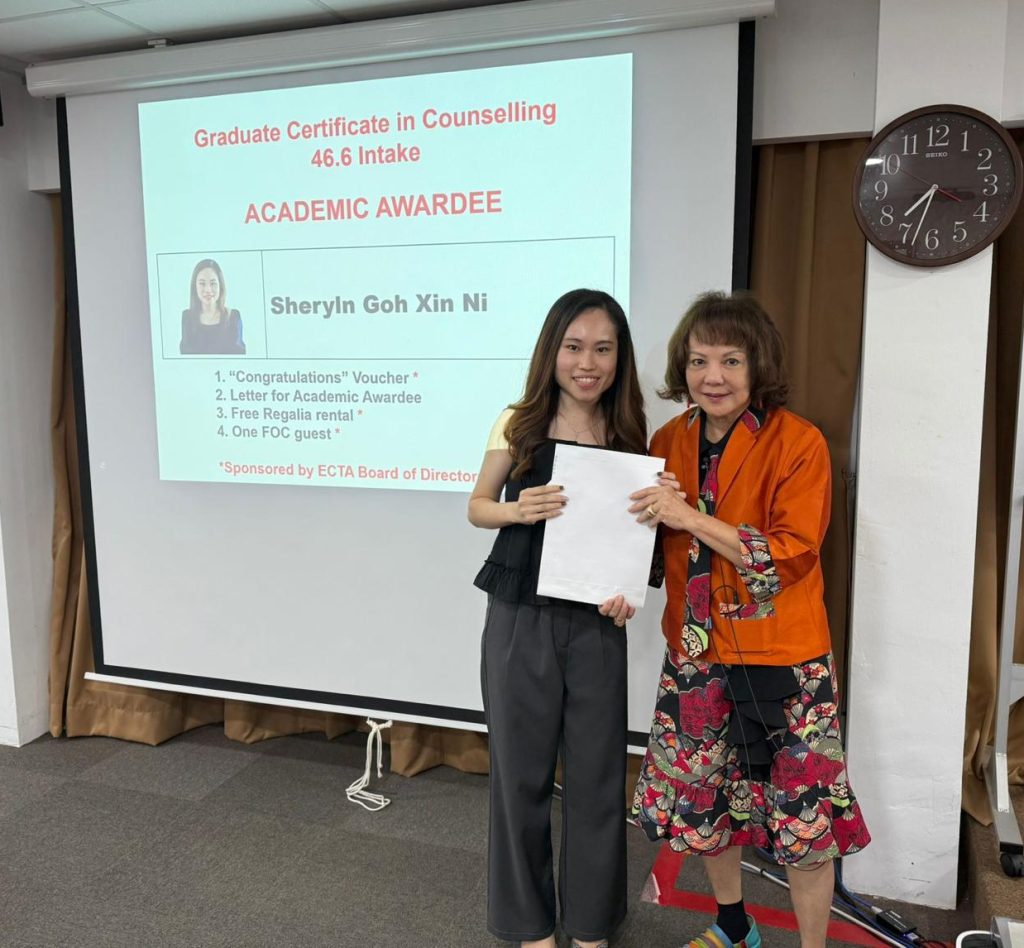 ECTA congratulates GD44.6 on their completion of Stage 2: Graduate Diploma in Counselling. The course review held on 21 August 2025 marked a key milestone in the professional development of our trainee counsellors. We are proud of all you have accomplished. Special commendation goes to the academic awardees for their outstanding performance.