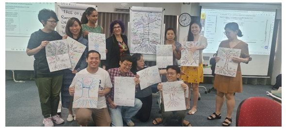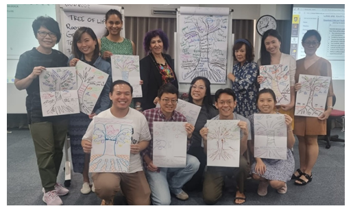 ECTA MS40.3 students participated in the “Tree of Life” activity, a reflective exercise where participants create a visual representation of various aspects of their lives. The Roots symbolise their family history, while the Ground represents their current lives and activities. The Trunk represents their skills and abilities, the Branches depict their hopes and wishes, and the Leaves represent important people in their lives. The Fruits symbolise gifts the students receive, and the Birds represent their contributions to family and community.